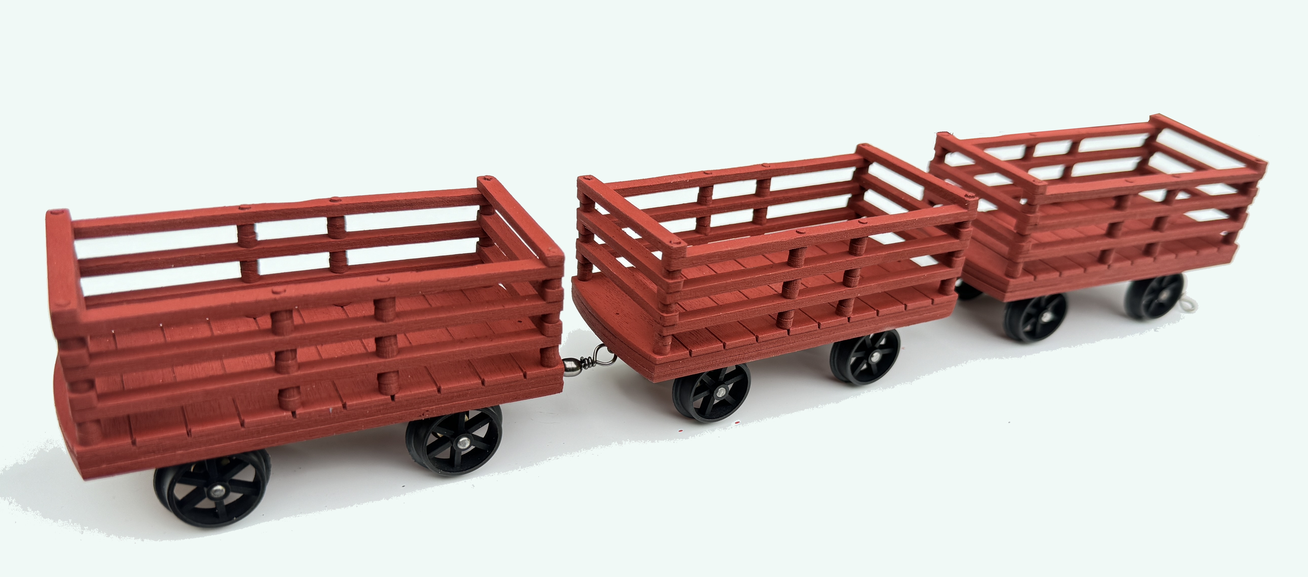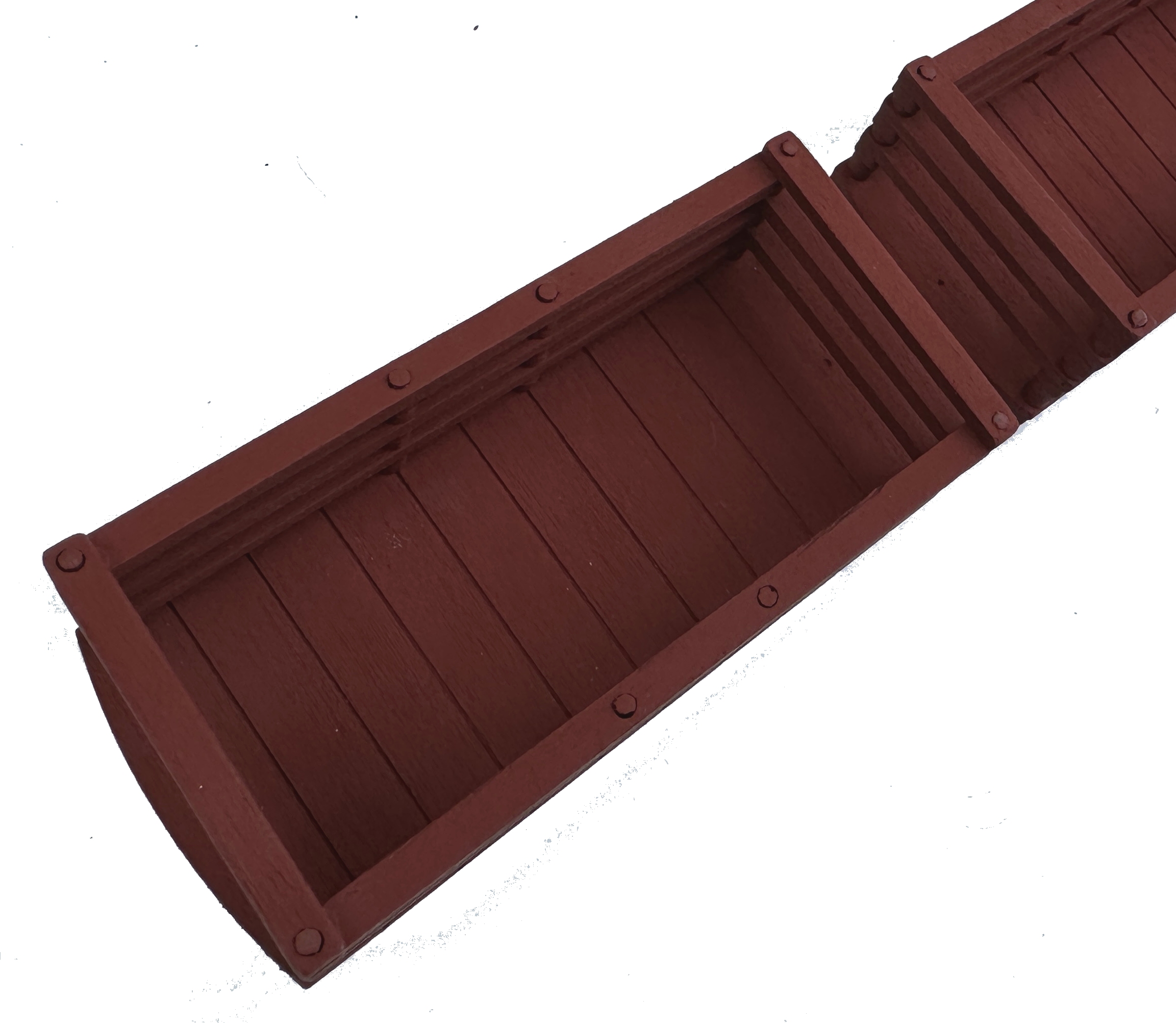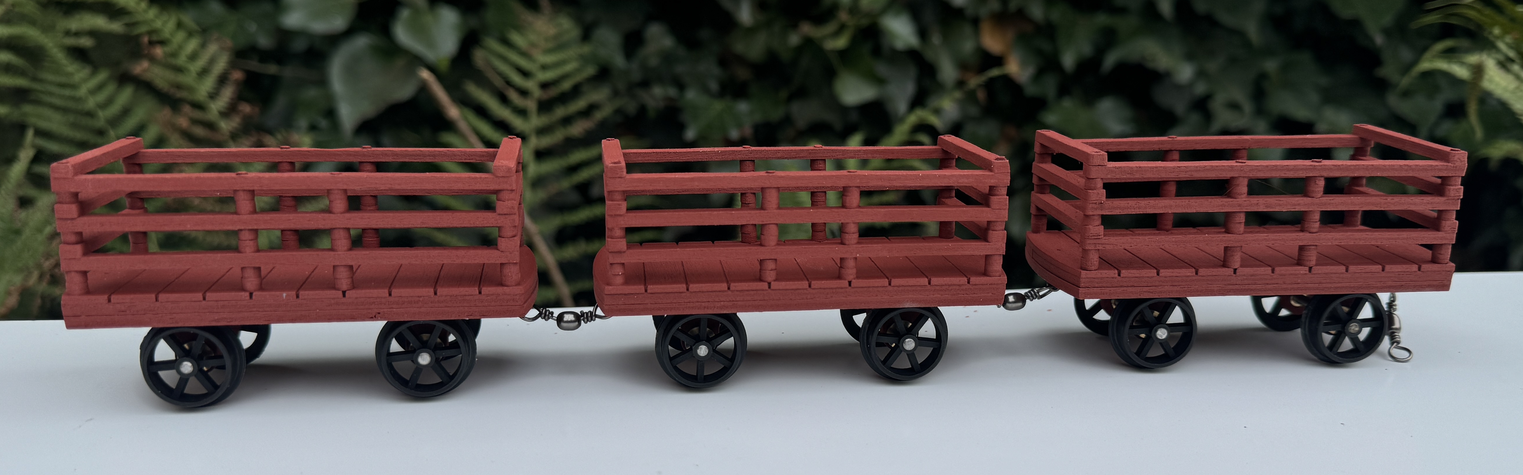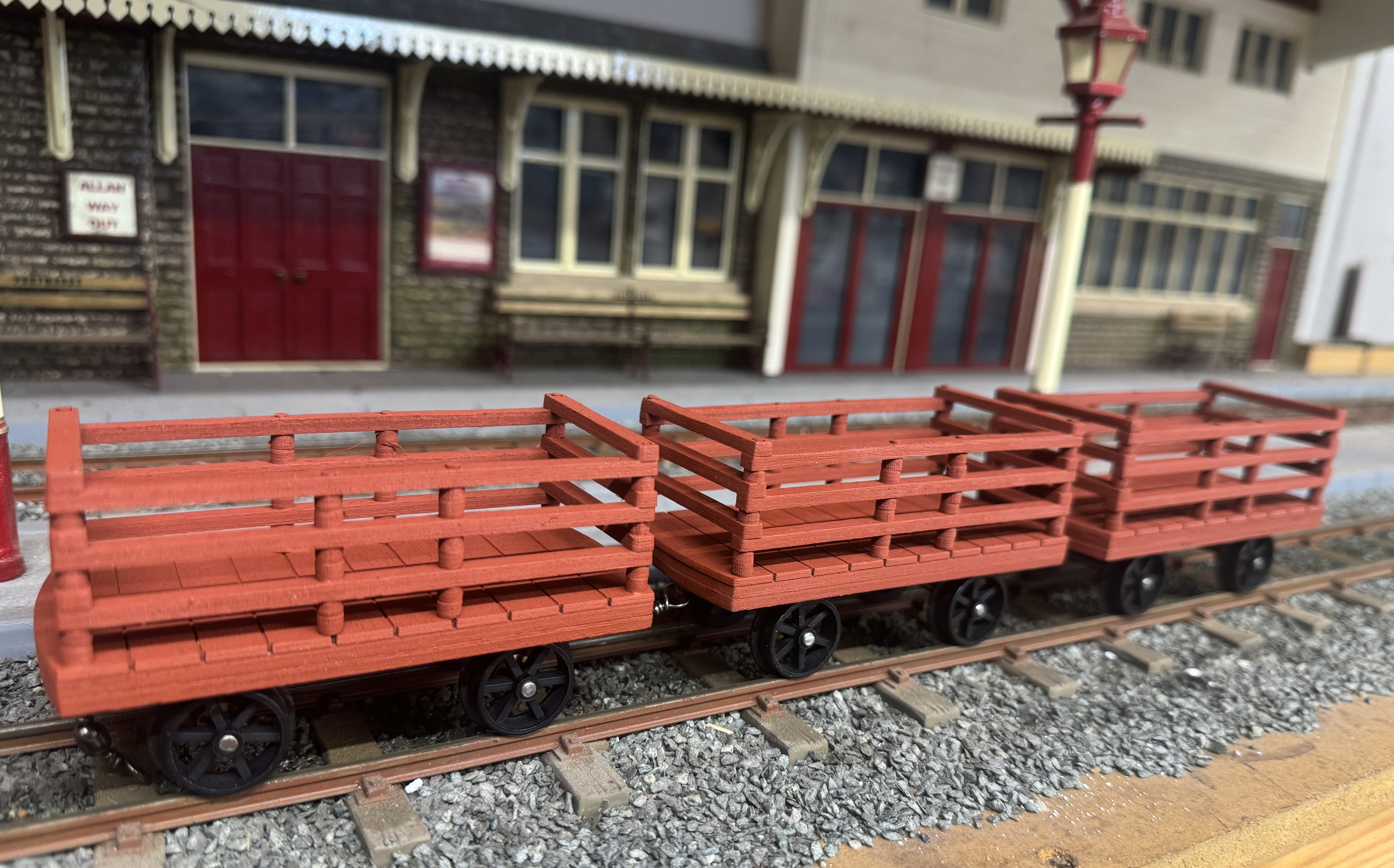These wooden slate wagons are based on the early Ffestiniog Railway’s inside bearing version. Although they used to be very common, only the replica Number 220 now exists.